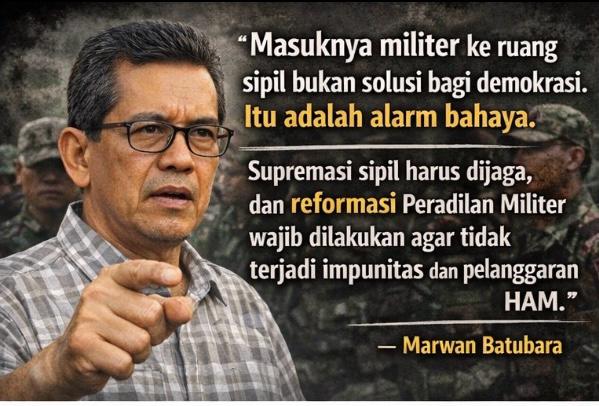 Direktur Indonesia Resources Studies (IRESS), Marwan Batubara, mengemukakan kritik tajam terhadap peningkatan keterlibatan militer dalam sektor-sektor sipil yang seharusnya dikelola dengan prinsip demokrasi. Ia menganggap fenomena ini tidak bisa dipandang sepele, karena dapat merusak prinsip supremasi sipil yang menjadi landasan utama sistem pemerintahan setelah reformasi. Ia menekankan bahwa demokrasi yang sehat membutuhkan pemisahan peran yang jelas antara otoritas militer dan sipil.